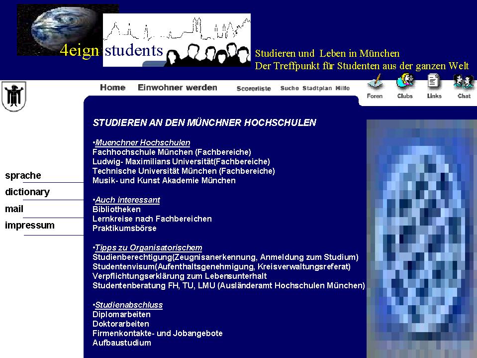 Die Idee, eine Virtual Community für ausländische Studierenden an den Münchner Hochschulen zu gründen, kam von der Grundüberlegung, daß